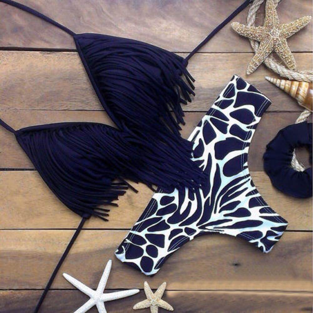 Push-up Padded Bra Swimsuit Bathing Sexy Women Tassel Bikini Set Swimwear L