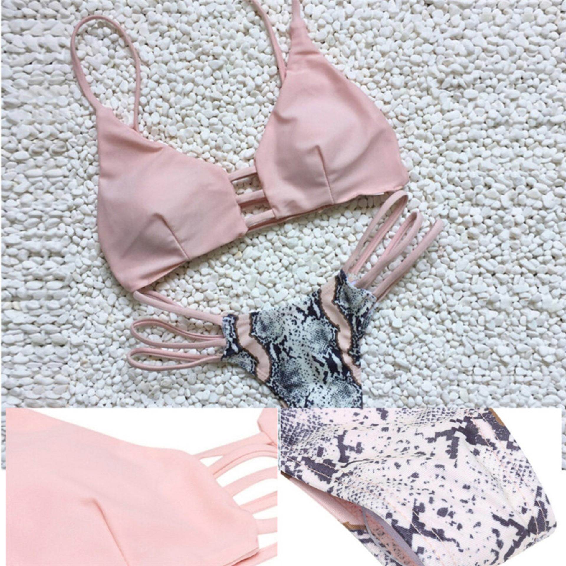 Sexy Women Bikini Set Swimwear Bandage Push-Up Padded Swimsuit Bathing Beachwear Pink